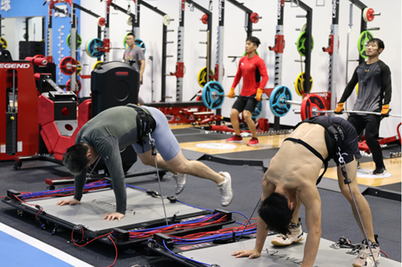 竞技体育系的学生正在刻苦训练